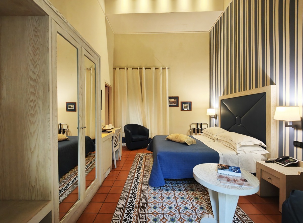 All rooms have modern furniture that blends nicely with the ancient structure of the ceilings and the grandeur of the historic building.
